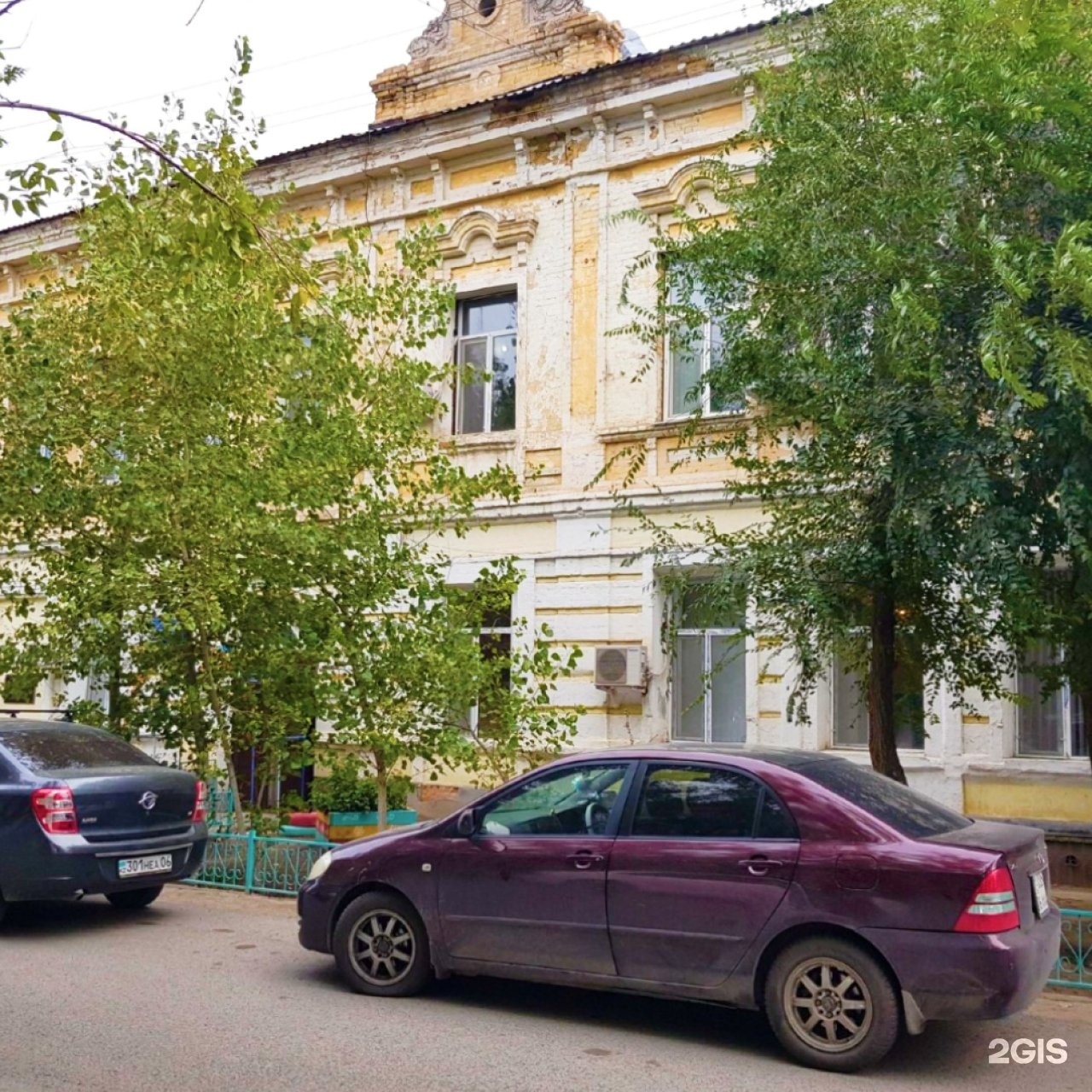 Причудливое кирпичное здание конца XIX века — предположительно бывшее Гурьевское общество трезвости или «Николаевская чайная» для простого люда. Гурьевское общество трезвости было основано в 1892 году. Здесь проводили народные чтения, чаепития, елки, концерты, литературные вечера и спектакли, даже имелась собственная библиотека-читальня. До революции здание главным фасадом выходило на Стрелецкую площадь с мясным и мелочным базаром. После революции, до 1934 года, в этом здании размещался клуб нефтяников «Горняк».